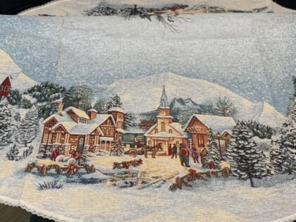 Fata de masă tip goblen – model Crăciun „Sat de iarnă & sanie”