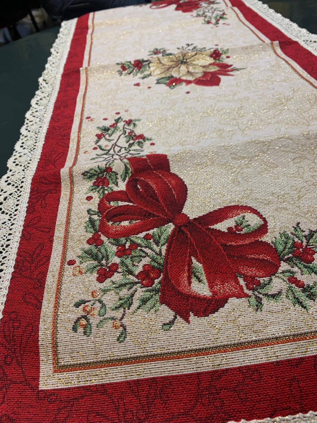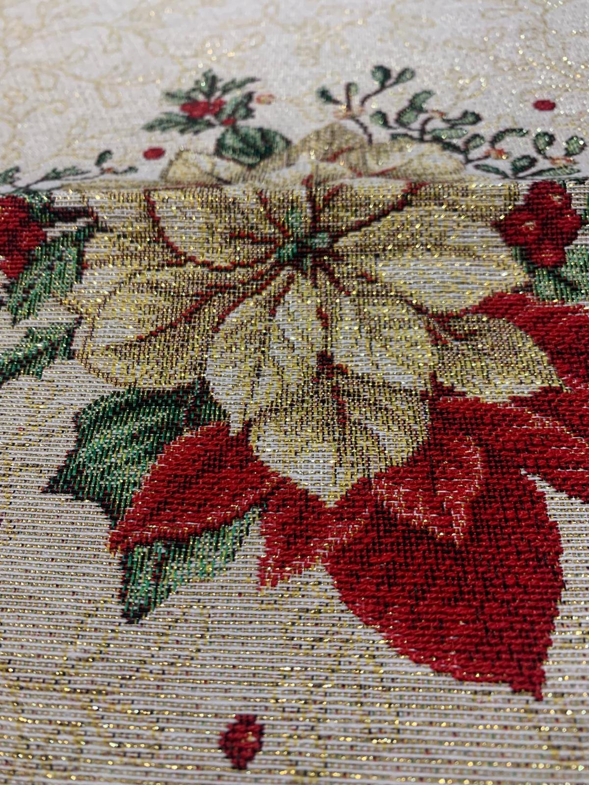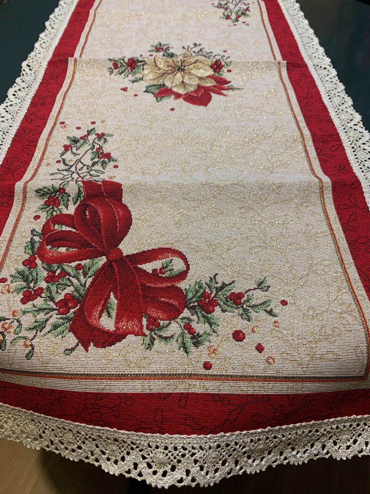 Napron Crăciun (fundă roșie & poinsettia) – 110×60 cm