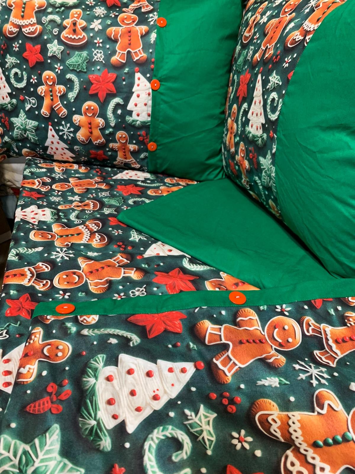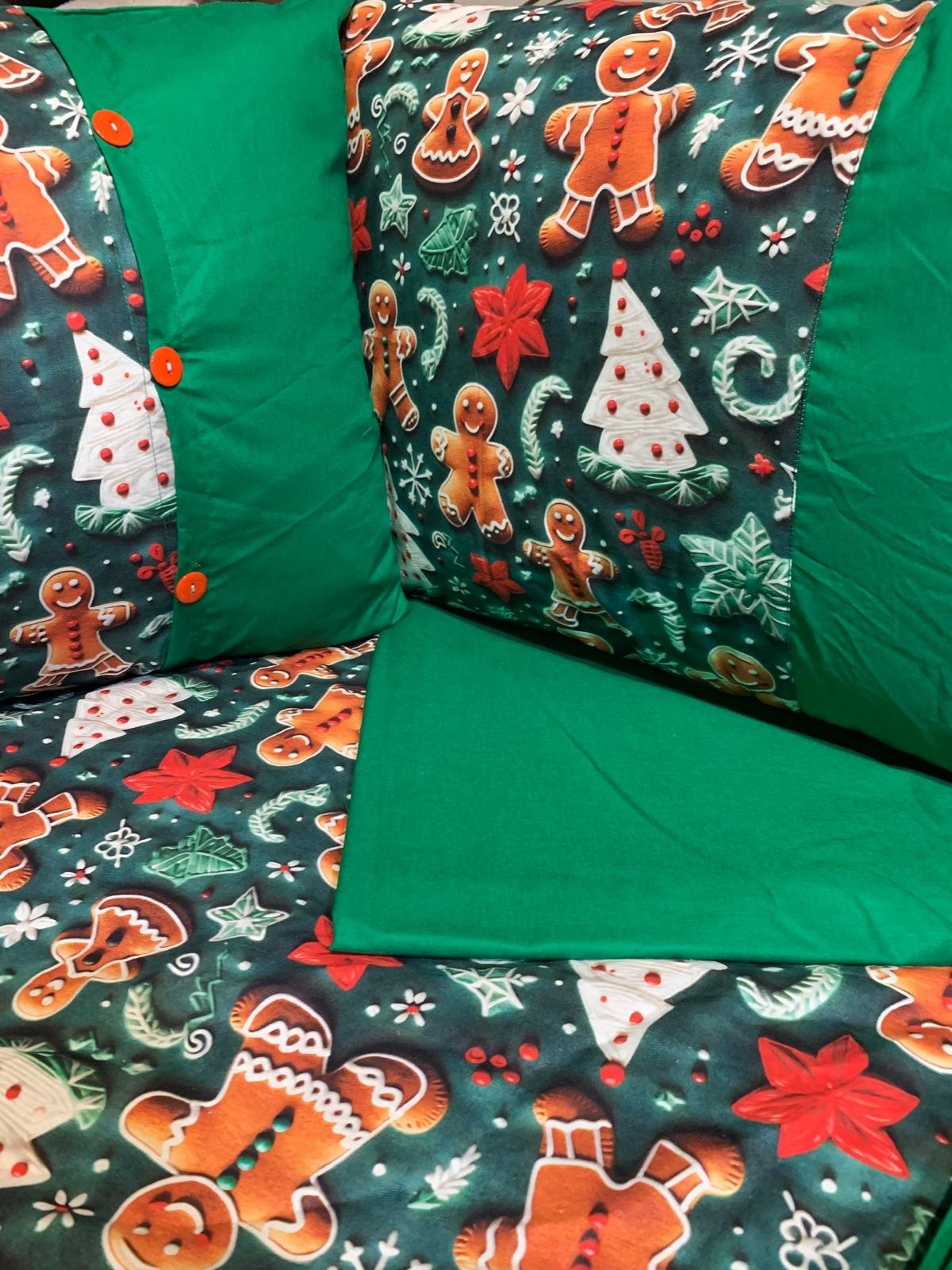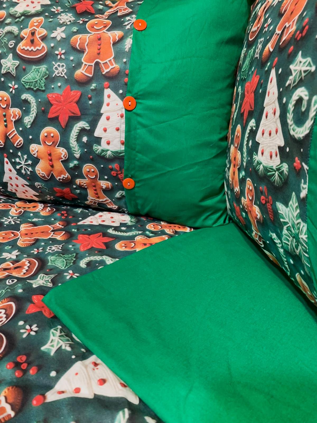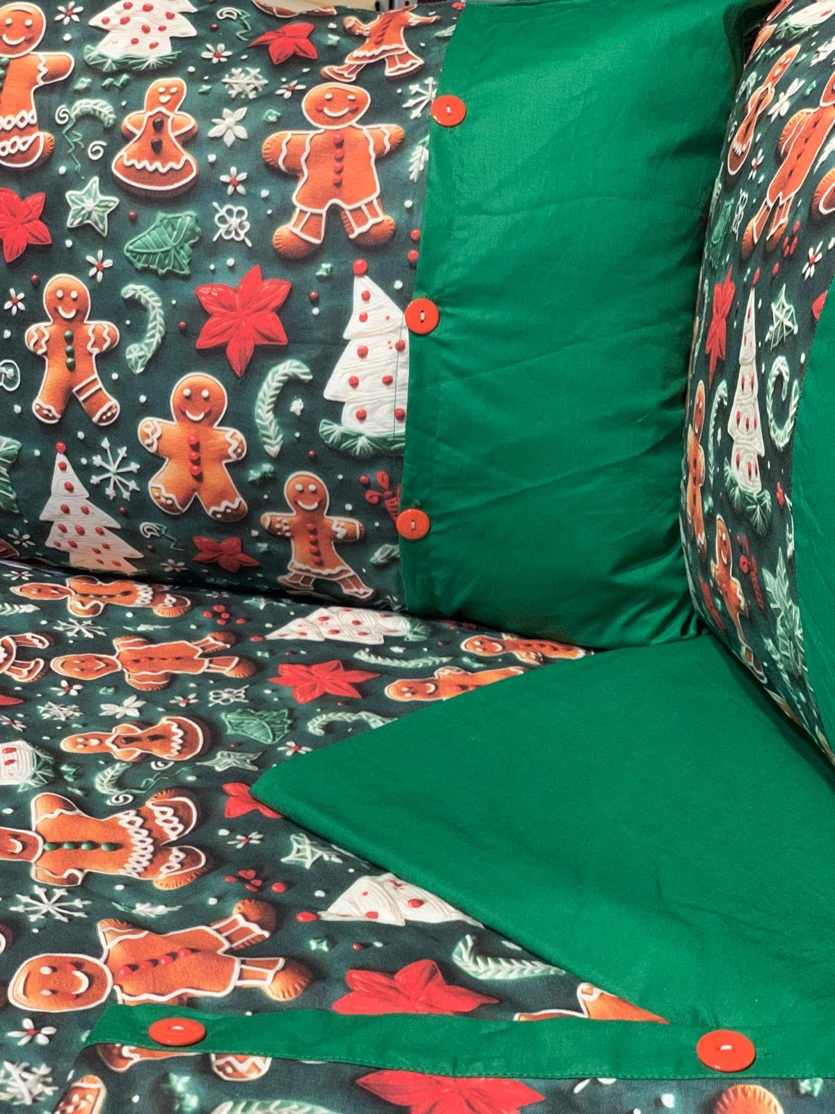 „Turtă Dulce pe Verde Smarald” – Lenjerie de Pat Crăciun, Bumbac Ranforce Lux 5D (6 piese)