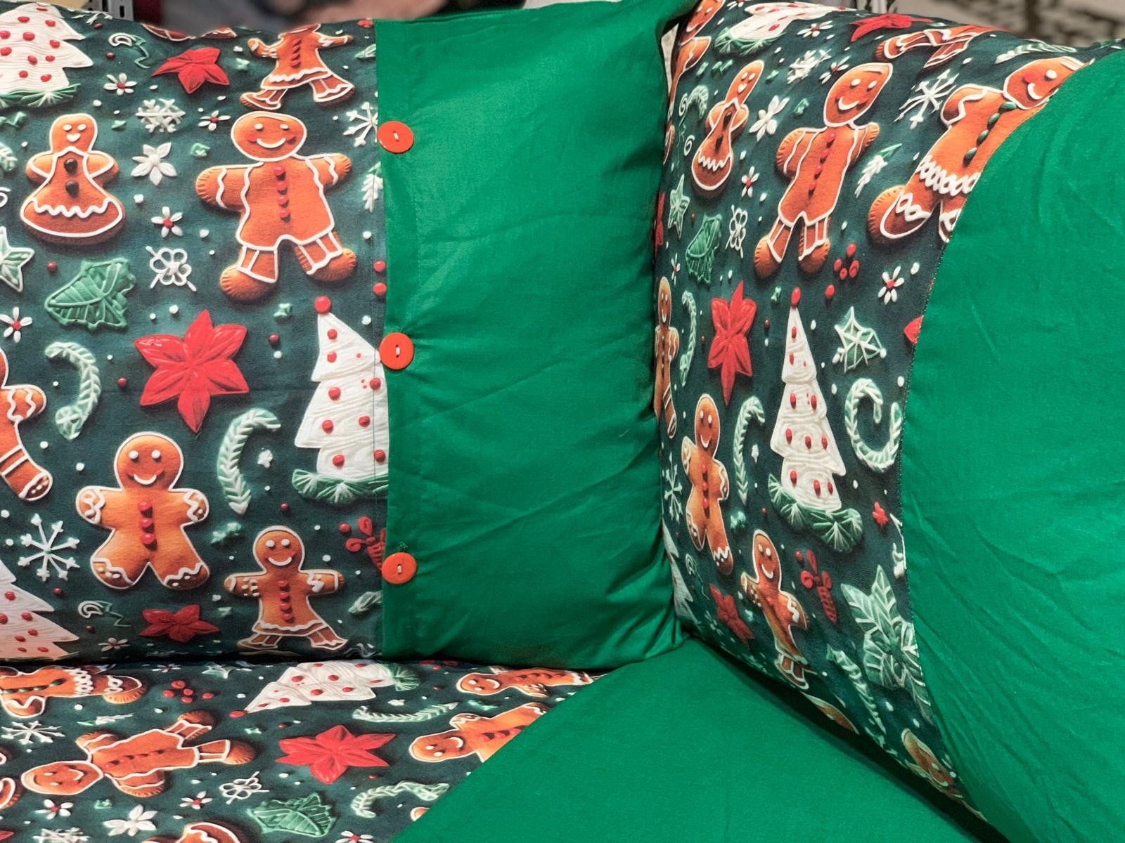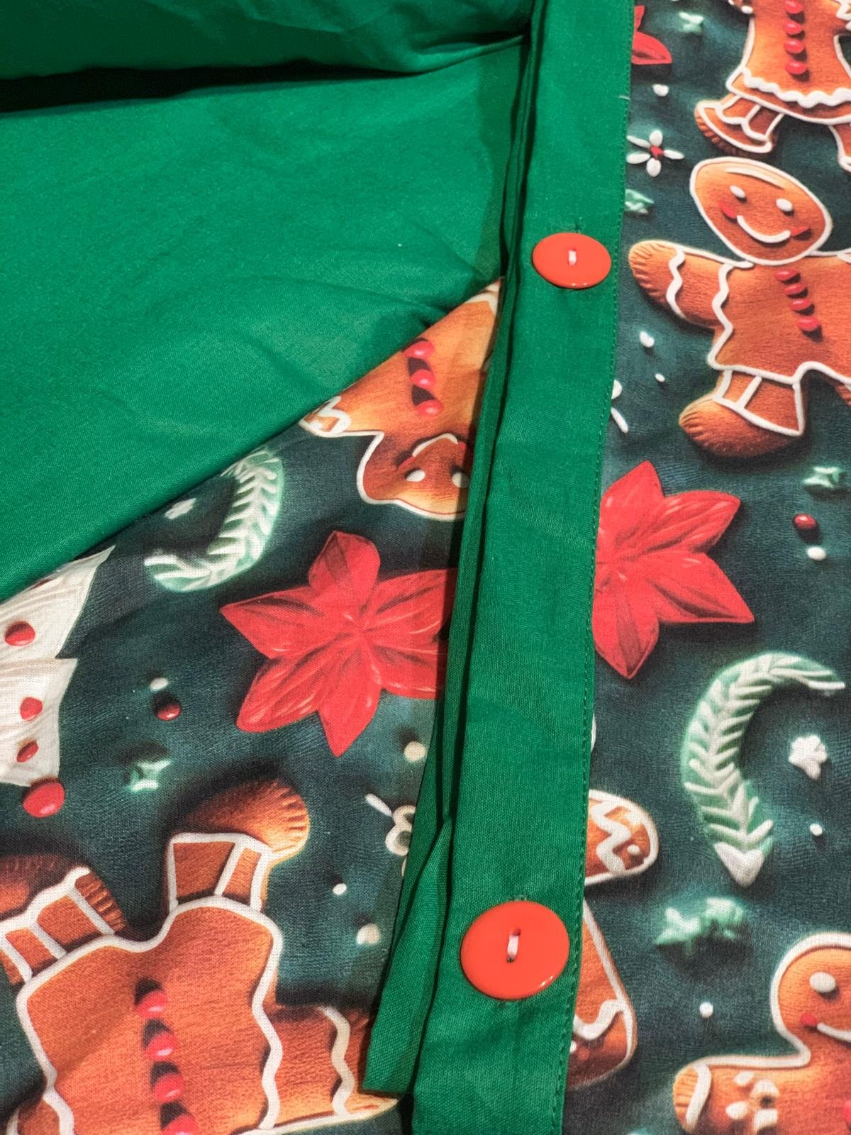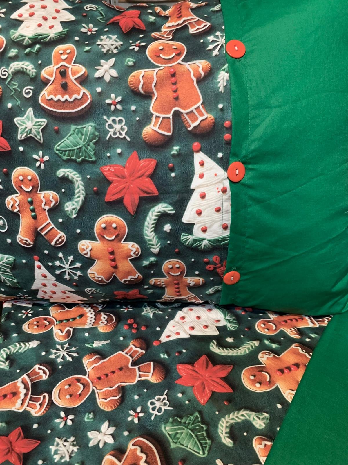Transformă dormitorul într-o poveste de iarnă cu lenjeria „Turtă Dulce pe Verde Smarald” – un set vesel, cald și spectaculos, perfect pentru perioada sărbătorilor. Imprimeul 5D aduce la viață personajele din turtă dulce, fulgii și decorurile de Crăciun, iar combinația cu verdele intens oferă un aer elegant și modern, în același timp.